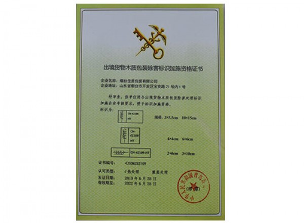 出境货物木质包装除害标识加施资格证书